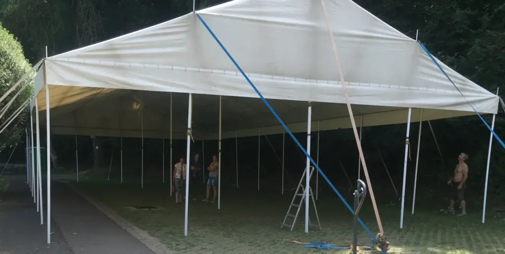 Általában 1–2 fő 10–15 perc alatt fel tudja állítani a pavilont, szerszám nélkül. Igény esetén segítünk az összeszerelésben.